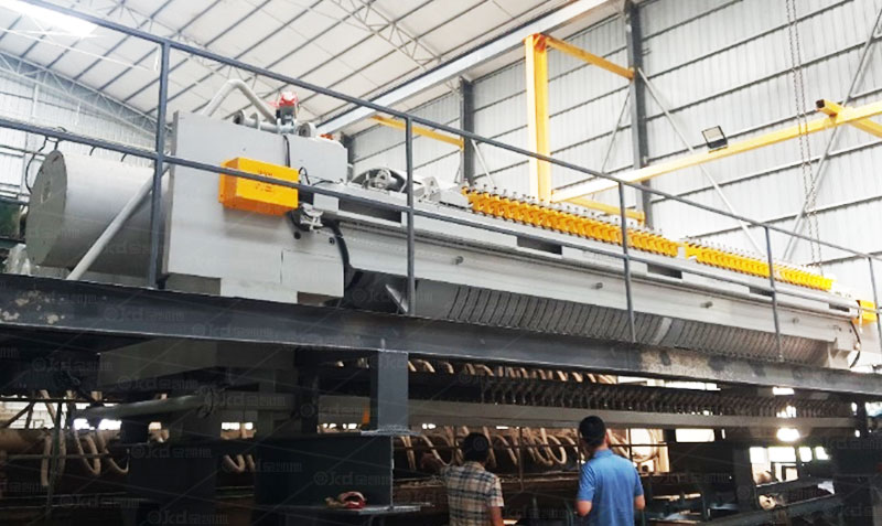 濾板開啟:油缸松開,利用自動拉板小車將濾板拉開。