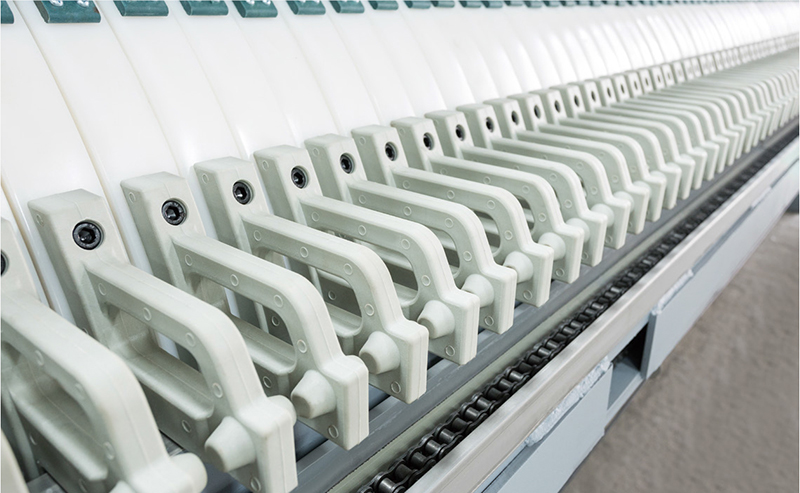 2、污水處理壓濾機工作時,濾板的拉緊以及松開工作是在主梁軌道上進行的,在運行過程中,脫軌現(xiàn)象也時有發(fā)生。研究發(fā)現(xiàn),造成這種現(xiàn)象的主要原因是:濾板在收緊工作時,連接濾板的小鏈發(fā)生脫落,導致軌道兩側的工作進度不一致,進而引發(fā)故障。