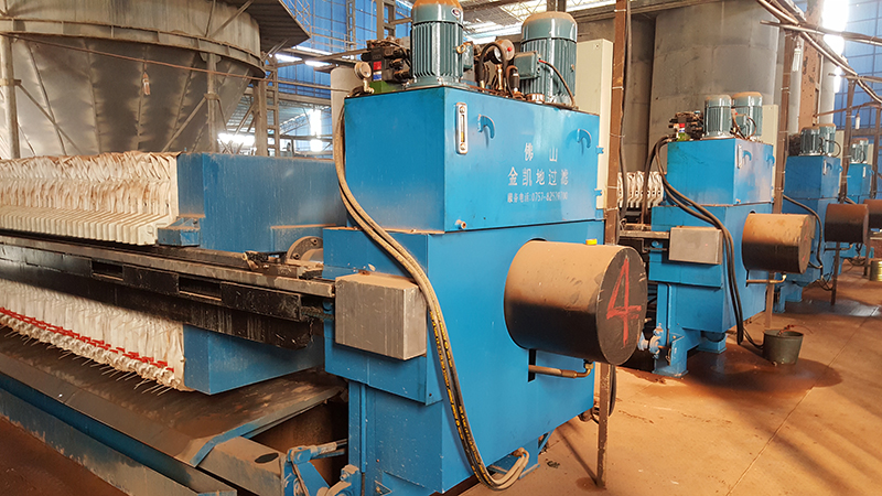 廂式壓濾機在過濾結束后進行鼓氣擠榨,能有效提高濾餅的合固率,尤其對有40%以上含固率要求脫液混合物是分離設備,一般可比普通廂式提高25%—30%的含固率。廂式壓濾機進料孔加大,避免料孔堵塞,濾板強度增加,進料過濾壓力提高,過濾速度加快,出渣方便,降低濾餅含水率與操作勞動強度。