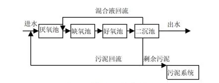 A2/O工藝是典型脫氮除磷工藝,具有悠久的歷史,在國內運行經驗豐富,應用范圍廣泛。A2/O工藝流程圖見圖1。