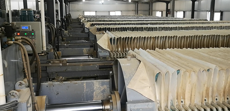 2、濾布縮回到了濾板之間。對壓濾機設備來說,要濾布正常的工作,那就須確保濾布的兩面要構成一個離隔獨立的空間,所以須要求濾布的邊際壓在濾布邊際上,而濾布往往大于濾板,一般就是怕設備在工作過程中,因濾餅膨脹,導致濾布縮回到濾板中去,這樣濾布就相當于決裂了,自然就呈現了這樣的現象。
